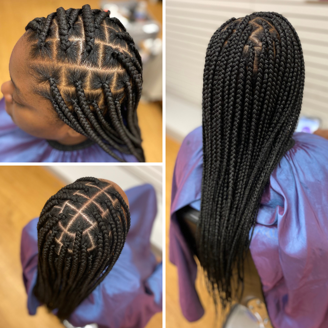 Includes: Cleanse the scalp, condition and rehydrate the hair, set and dry the style, touch up braids as needed.
